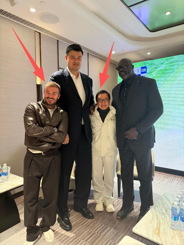 不过成龙大哥在跟贝克汉姆合照时,一个小细节让人感觉很有意思。